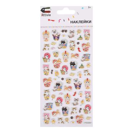 Набор наклеек Attivio Котики в еде объемные PYA0408V