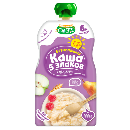 Цена на Каша безмолочная Маленькое счастье 5 злаков и фрукты 111г с 6 месяцев - 1.07 Br.