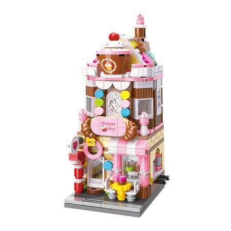 Яркий конструктор от Qman «Сладкий дом» — двухуровневый кондитерский магазин с украшением в виде огромного праздничного кекса! Внутри и снаружи магазина продумано всё для торговли и уютных посиделок. На первом этаже расположен прилавок, за которым кондитеры выкладывают свежую выпечку. Рядом с магазином стоит столик для посетителей, где можно насладиться чашечкой кофе и только что купленным пирожным. Конструктор совместим с другими блочными наборами производителя, поэтому «Сладкий дом» может стать центральным украшением городской улицы.