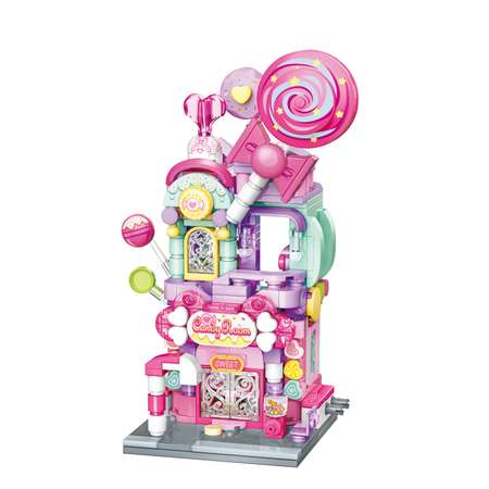 Конструктор от Qman «Магазин конфет» позволяет собрать двухуровневое здание, которое так и манит своим красочным оформлением. Главная архитектурная изюминка, которая сразу бросается в глаза — это огромный круглый леденец на палочке, венчающий крышу. На первом этаже расположен вход в магазин — красивая ажурная дверь, на второй — балкончик, с которого можно наблюдать за городской жизнью. Задняя часть конструкции не имеет стенки, что предоставляет свободный доступ ко всем локациям для игр. Набор совместим с другими блочными наборами производителя — можно расширить игровую вселенную и собрать настоящий город.