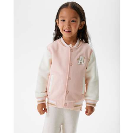 Тёплый бомбер для девочки BabyGо в розовом цвете, с объёмной вышивкой.