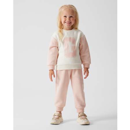 Тёплый комплект для девочки BabyGo из розовых брюк и свитшота с контрастными рукавами.