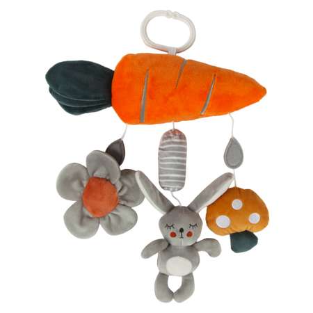 Подвеска «Морковка» — мягкая развивающая игрушка для малыша с самого рождения. Она стимулирует зрительное и тактильное восприятие, способствует развитию координации и мелкой моторики благодаря звону колокольчика и разнообразным по форме элементам.