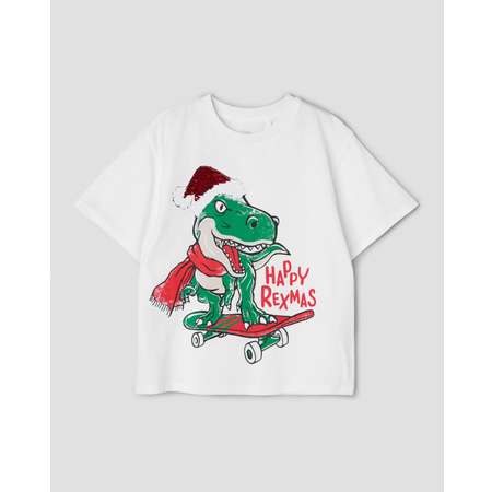 Белая футболка для мальчика Futurino с новогодним принтом, декорированным пайетками.