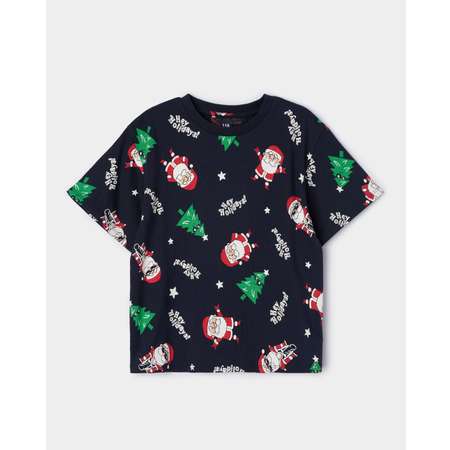 Новогодняя футболка для мальчика Futurino, декорированная принтом с Дедом Морозом.