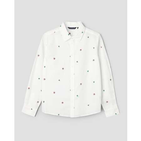 Белая новогодняя рубашка для мальчика Orsolini с цветным принтом.