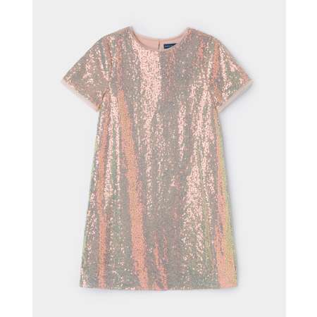 Мерцающее праздничное платье для девочки Orsolini Диско в бежевом цвете, расшитое пайетками.