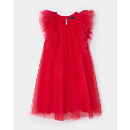 Праздничное платье для девочки Orsolini красного цвета с блёстками. Декорировано пышными рукавами из оборок.
