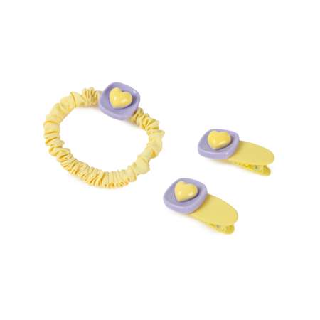 Набор Demi Star Candy — это текстильная резинка для волос и две заколки, выполненные в едином дизайне. Аксессуары украшены сердечками. Резинка подойдёт для хвостика или закрепления косички, заколки помогут зафиксировать боковые пряди и станут ярким украшением причёски.