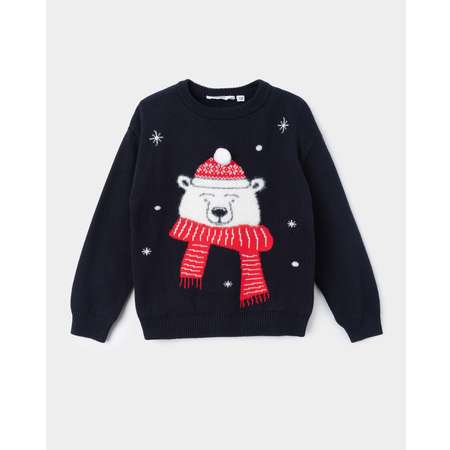 Тёмно-синий джемпер для мальчика Futurino с новогодним декором в виде пушистого белого медведя.