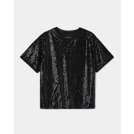 Блестящая футболка для девочки Orsolini в чёрном цвете, расшитая пайетками.