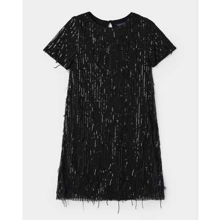 Мерцающее чёрное платье для девочки Orsolini Маргарита, декорированное пайетками в виде бахромы.