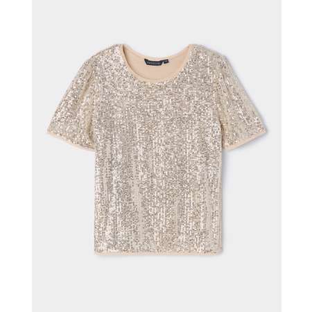 Блестящая блузка для девочки Orsolini "Светлая Фея" в бежевом цвете, расшитая пайетками.