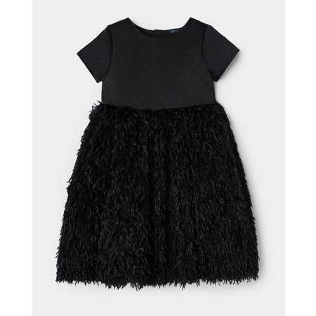 Чёрное праздничное платье для девочки Orsolini Тёмная фея, украшенное фактурной юбкой с декором в виде перьев.