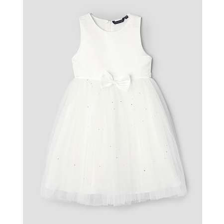 Праздничное платье для девочки Orsolini в белом цвете с пышной юбкой, декорированной блёстками. Спереди линия талии украшена декоративным бантиком.