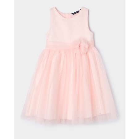 Пышное праздничное платье для девочки Orsolini нежно-розового цвета с блёстками. На линии талии декорировано вшитым фатиновыми поясом с объёмным съёмным цветком.