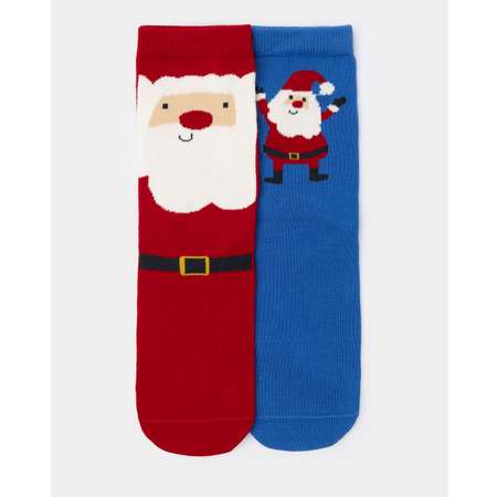 В комплекте Futurino новогодние носки для мальчика с принтом "Дед Мороз" - синие и красные.