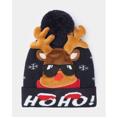 Новогодняя шапка для мальчика Futurino с цветным декором в виде оленя с объёмными рожками.