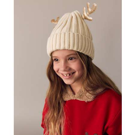 Новогодняя шапка для девочки Futurino с блестящими оленьими рожками.