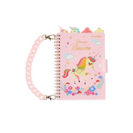 Блокнот Munaby с очаровательным единорогом станет верным спутником для записей. Его компактный размер подходит для того, чтобы носить его в сумке или небольшом рюкзаке. А еще его удобно носить как сумочку, для чего в комплект входит ручка-цепочка — ее можно пристегнуть при помощи карабинов и так же легко снять. Внутри — 80 листов, готовых принять ваши мысли, идеи, списки дел или творческие эскизы. Блокнот надежно скреплен прочной спиралью, которая позволяет листам легко переворачиваться на 360 градусов и лежать абсолютно ровно. Плотная обложка с ярким и стойким принтом надежно защитит ваши записи от влаги, заломов и случайных повреждений в сумке, делая блокнот не только красивым, но и практичным аксессуаром для учебы, работы или личных заметок.