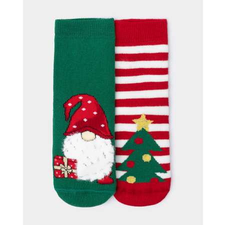 В комплекте Futurino новогодние носки для девочки, декорированные цветным принтом с люрексом - зелёные и красные в полоску.