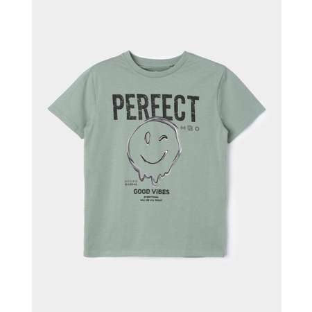 Футболка для мальчика Futurino в цвете хаки с эмодзи.