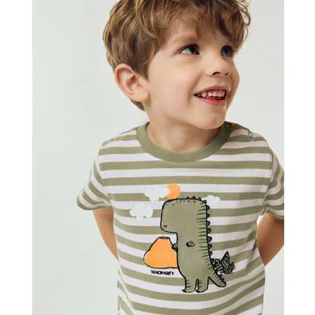 Полосатая футболка для мальчика Baby Gо Trend, декорированная принтом с забавным динозавром.