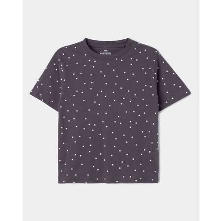 Тёмно-серая футболка для девочки Futurino в горошек.