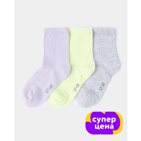 В комплекте Futurino три пары однотонных носков для девочки - сиреневые, светло-серые и неоновые зелёные.