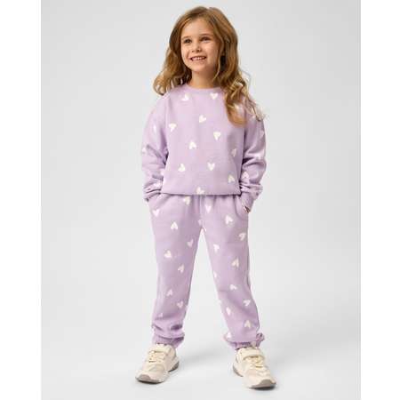 Сиреневые брюки для девочки Futurino, декорированные принтом с сердечками.