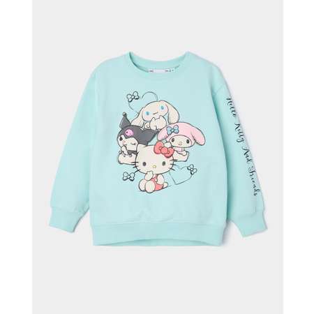 Мятный свитшот для девочки HELLO KITTY AND FRIENDS с цветным принтом.