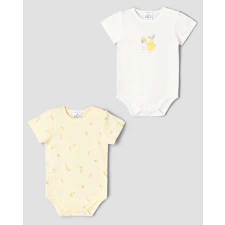 В комплекте BabyGо два боди для девочки, декорированные цветным принтом с лимончиками - белое и бежевое.