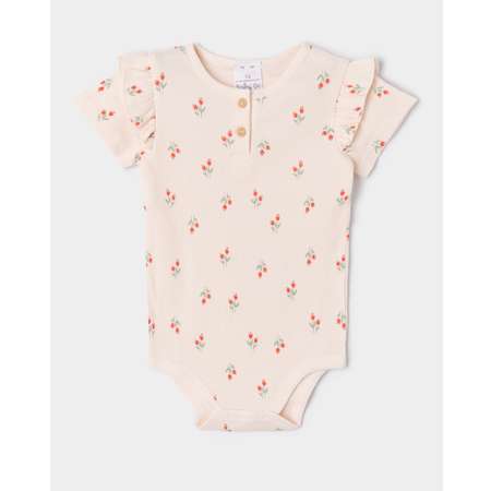 Розовое боди для девочки BabyGo , декорированное оборками и нежным цветочным принтом.