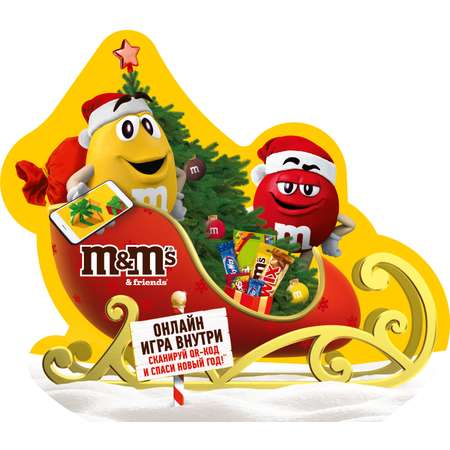 - Упаковка, выполненная в форме санок Деда Мороза с любимыми героями M&M's, станет настоящим украшением вашего новогоднего стола;
