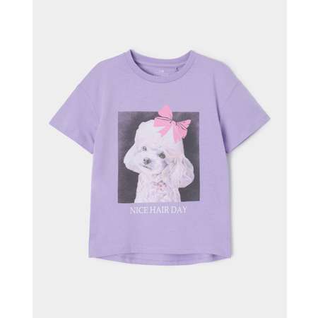 Фиолетовая футболка для девочки Futurino, декорированная принтом с изображением милого пуделя.