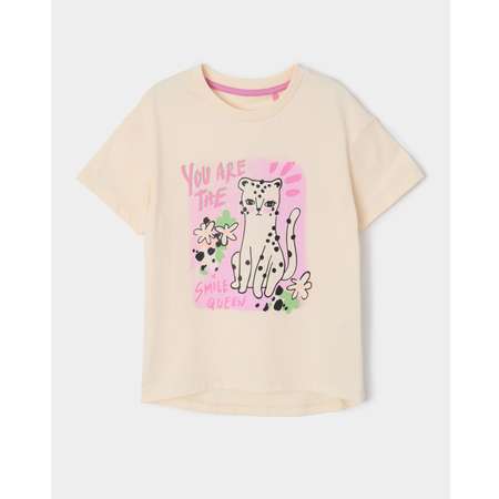 Бежевая футболка для девочки Futurino с ярким цветным принтом.