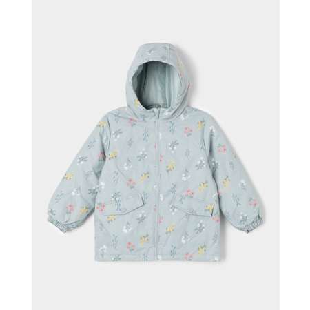 Зелёная демисезонная куртка для девочки Futurino с цветочным принтом.