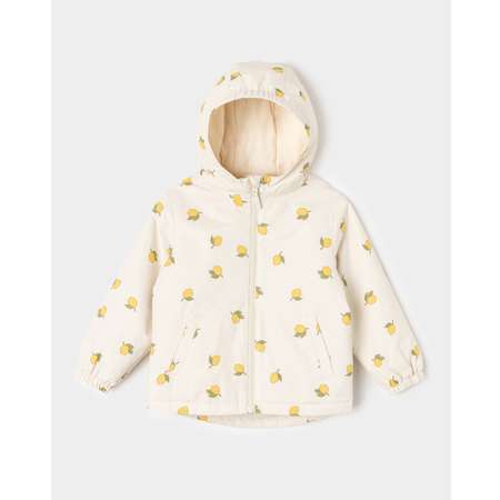 Жёлтая куртка для девочки BabyGo, декорированная принтом с лимонами.