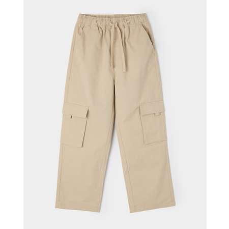 Однотонные широкие брюки-карго для мальчика Futurino Fashion в бежевом цвете, с накладными карманами.