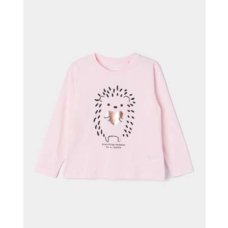 Розовый лонгслив для девочки Futurino, декорированный принтом с ёжиком.