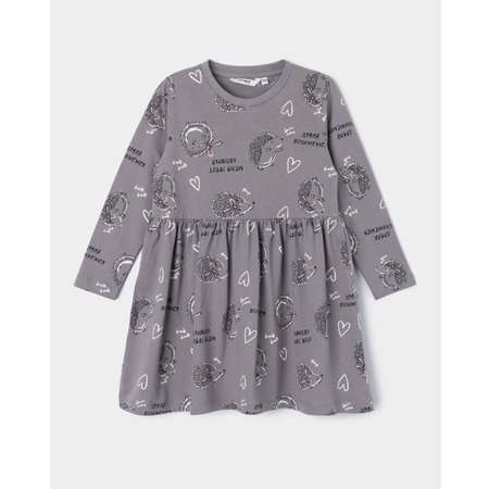Трикотажное серое платье для девочки Futurino, декорированное принтом с ёжиками.