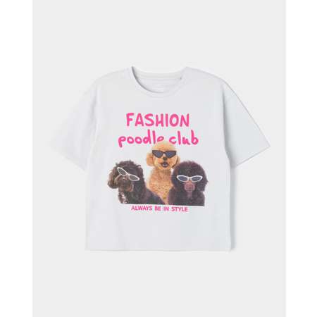 Светло-серая футболка для девочки Futurino с забавным принтом "Fashion goodle club".