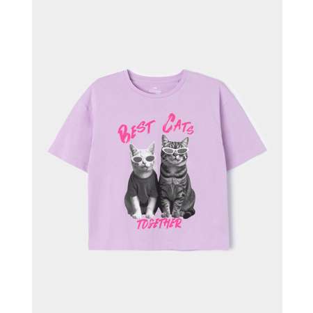Сиреневая футболка для девочки Futurino с забавным принтом "Best cats together".