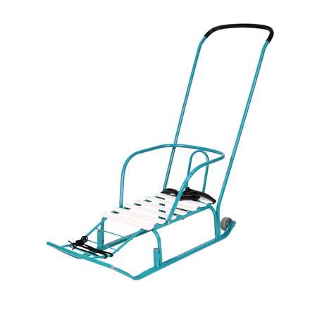 Металлические санки с родительской ручкой-толкателем для катания и перевозки детей.
