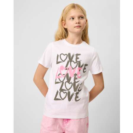 Белая футболка для девочки Futurino, декорированная принтом с надписью "Love".