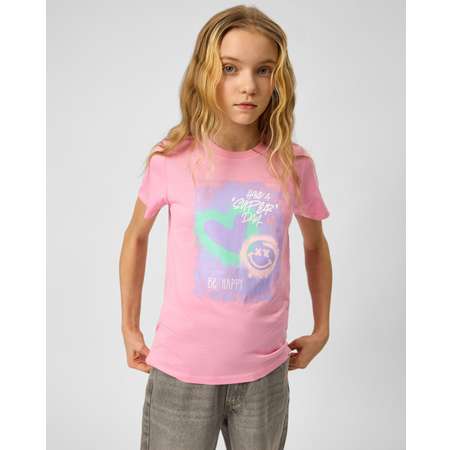 Розовая футболка для девочки Futurino, декорированная цветным принтом в стиле граффити.