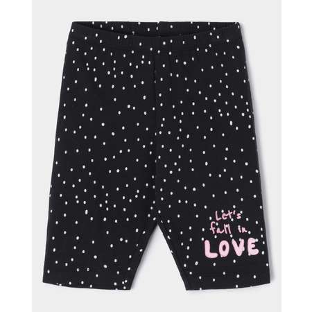 Чёрные велосипедки для девочки Futurino с принтом в горошек и блестящей надписью "Let's fall in love".