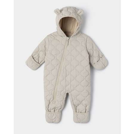 Стёганный комбинезон для мальчика BabyGo бежевого цвета, с ушками на капюшоне.