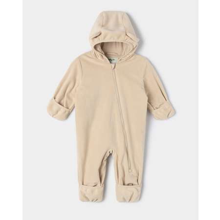 Мягкий плюшевый комбинезон для мальчика BabyGo бежевого цвета, с ушками на капюшоне.