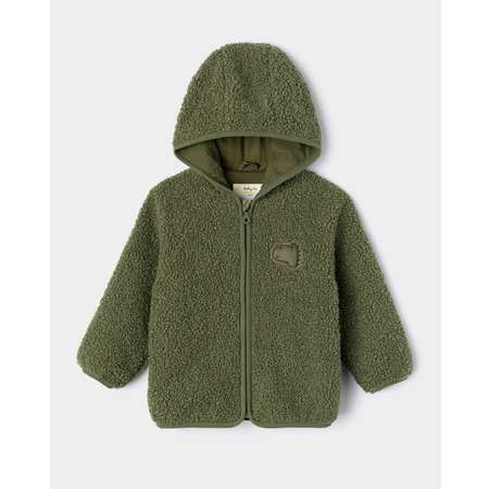 Плюшевая толстовка для мальчика BabyGo Trend цвета хаки, декорированная объёмной вышивкой с динозавриком.